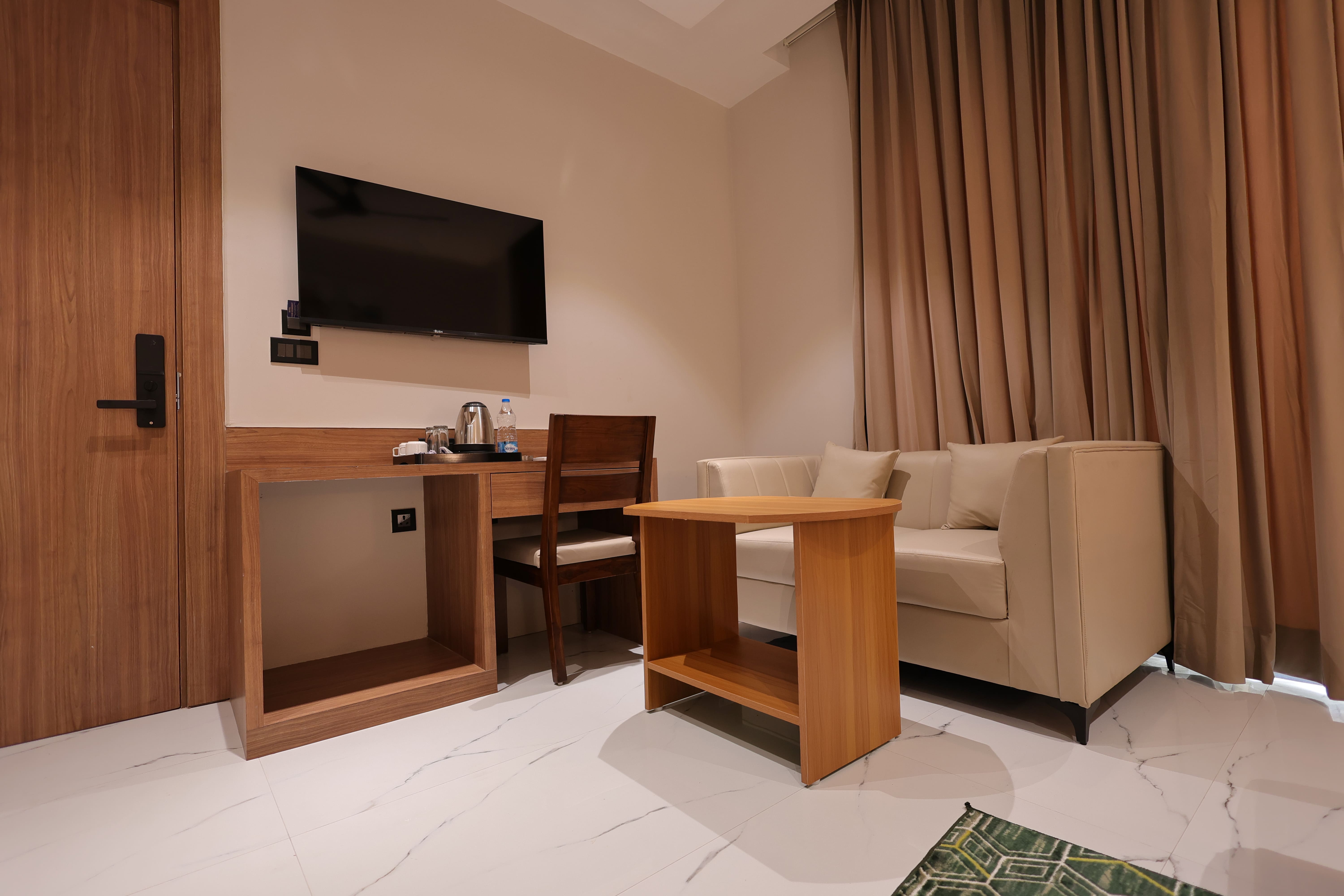 Experience comfort and elegance in our Super Deluxe Room at Yash Residency Hotel. Thoughtfully designed with modern interiors, this spacious room offers a cozy ambiance, premium furnishings, and all essential amenities to ensure a relaxing stay. Perfect for both business and leisure travelers, it combines convenience with luxury for a memorable experience. Our Super Deluxe Room offers a spacious retreat with elegant interiors, modern amenities, and comfortable furnishings. Designed for both business and leisure travelers, the room includes premium bedding, high-speed Wi-Fi, and a welcoming ambiance to ensure a pleasant stay at Yash Residency Hotel.